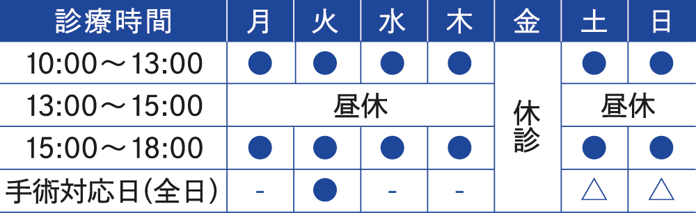 ■代診日:金曜日(手術時のみ院長が対応します)